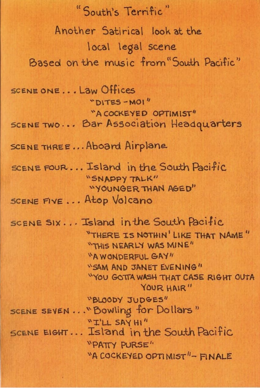 As often happens, our firm's name was recognized by a reputable local attorney who staged musical comedies in the 1970s at the Bench Bar Conference with the Allegheny County President Judge and our Proprietor's grandfather, the late Don Very. He had such fond memories that he mailed us these pictures. Our Proprietor unknowingly continued this tradition at Boston University School of Law by directing the comedy troupe The Legal Follies (started by Emmy-winner David E. Kelly), and returns every year for the show. We never met Don Very, but as his late wife would say, he has the best seat in the house. ⛅️😇